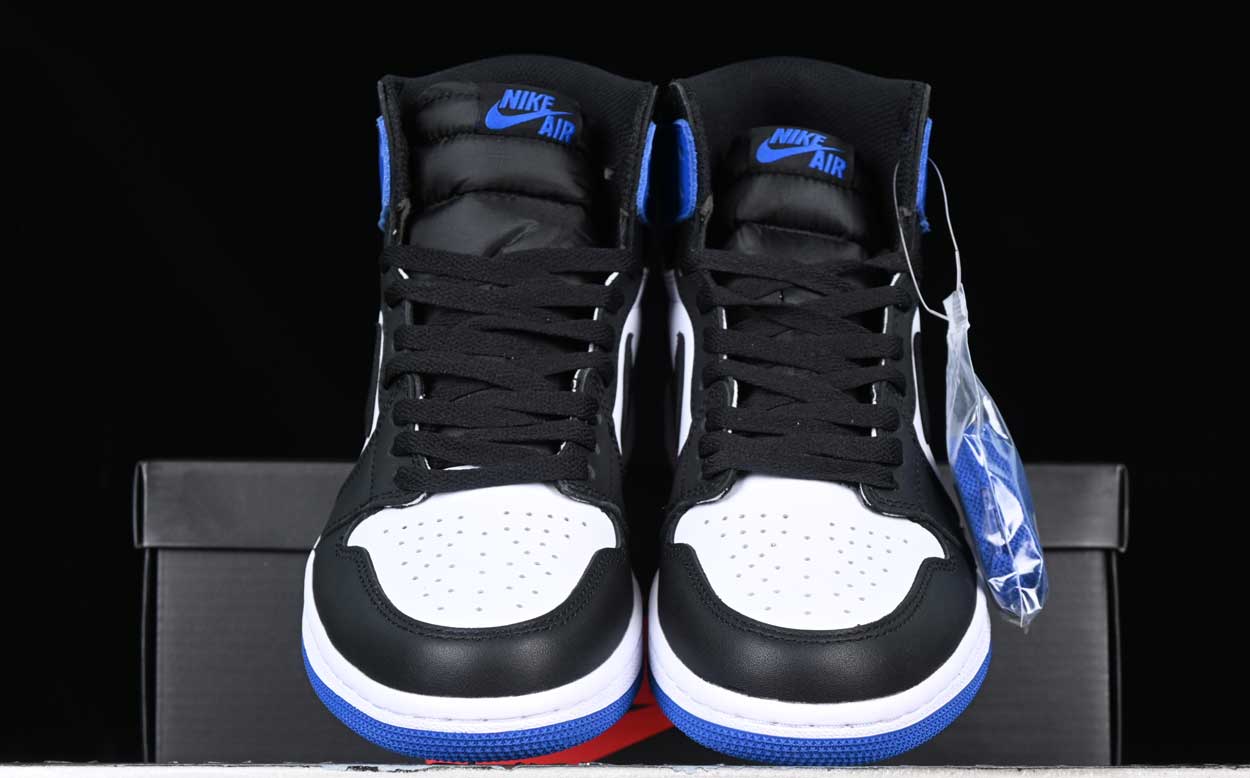 This high-top Air Jordan 1 sneaker features an all-leather upper with Retro Black toe color blocking accented by Royal Blue. Black appears on the forefoot, Swooshes, tongue, eyelets, and ankle collar, while Royal Blue dominates the heel and collar flaps. A Pristine White base on the toe and mid-panel completes the OG colorway. Other details include a Fragment Design logo etched on the lateral heel, the conventional ‘Wings’ logo on the outer collar flap, tongue branding, black laces, and toe box perforations. Underneath, a white midsole and Royal Blue rubber outsole complete the design. Each pair comes with an extra set of blue laces.