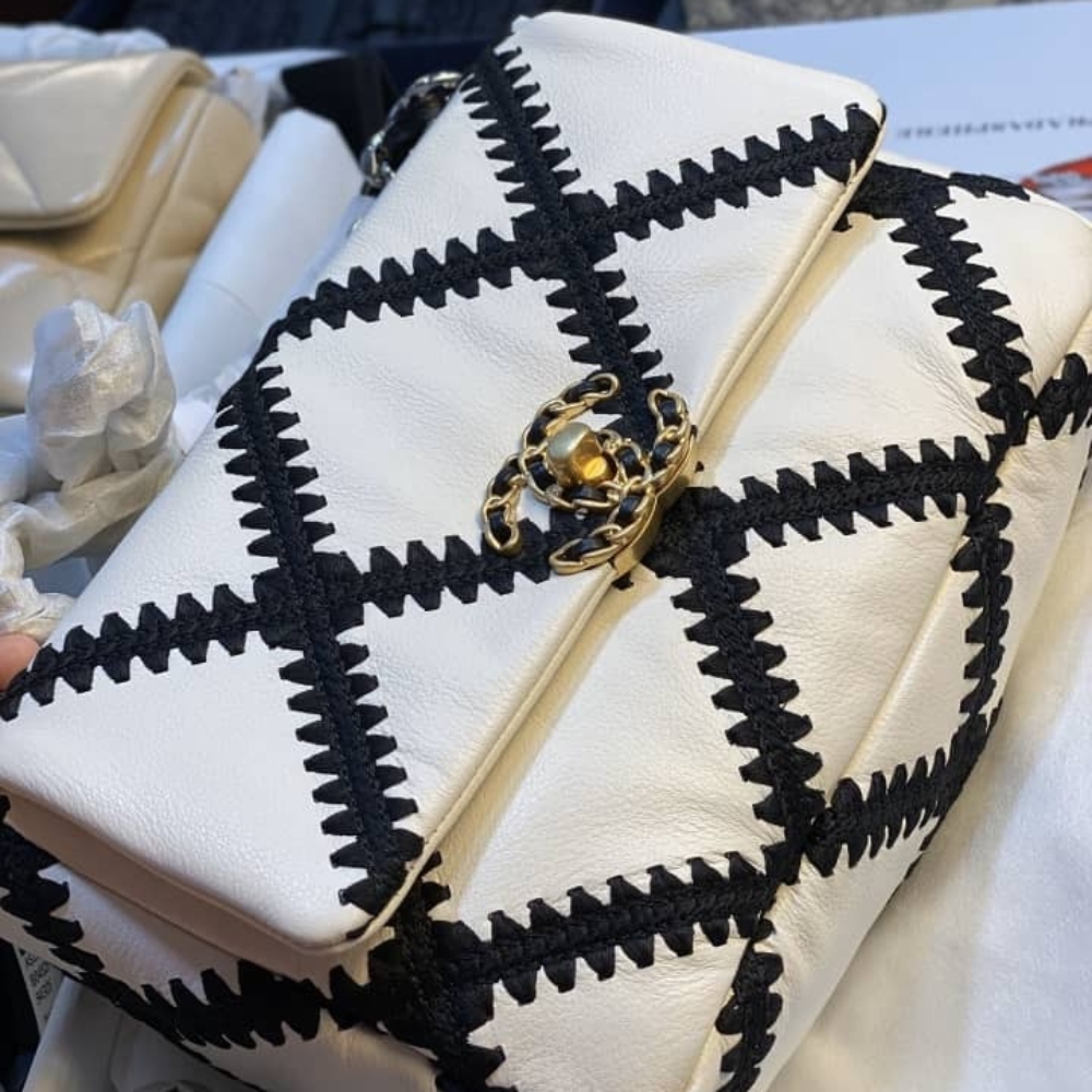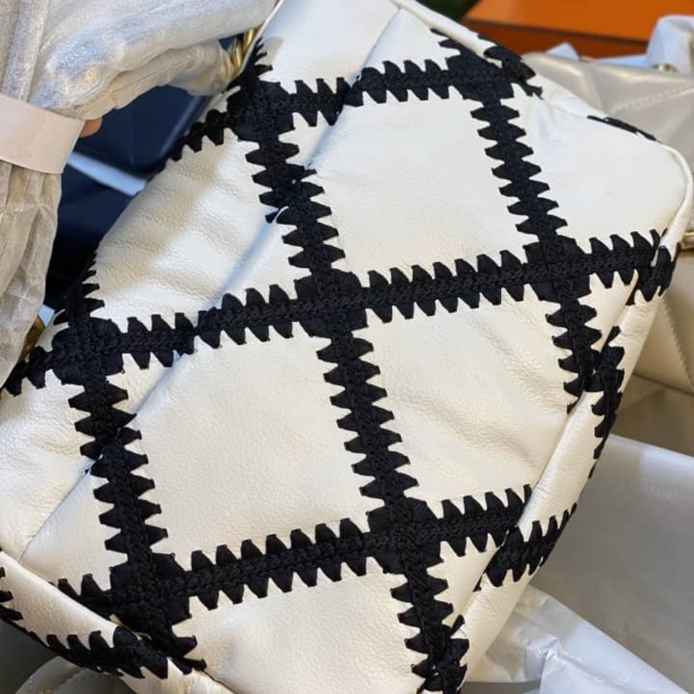 - Signature diamond quilting in black crochet