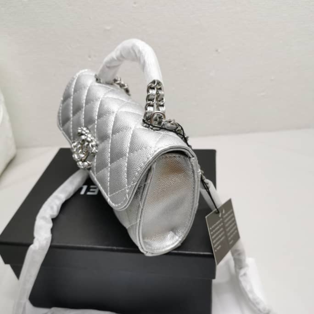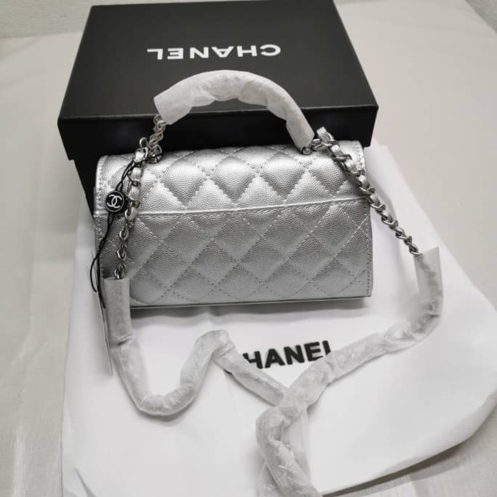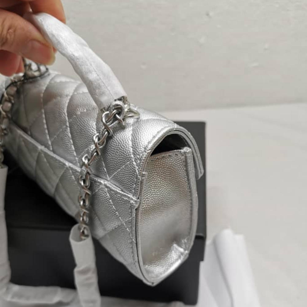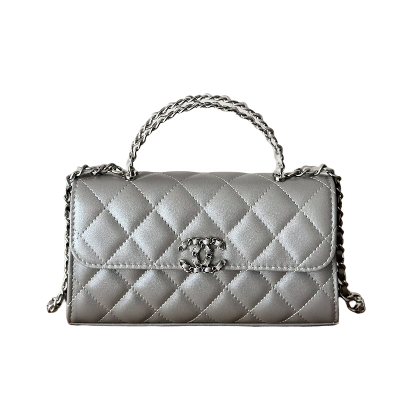 - Material: Clutch with chain, grained shiny & gold-tone metal