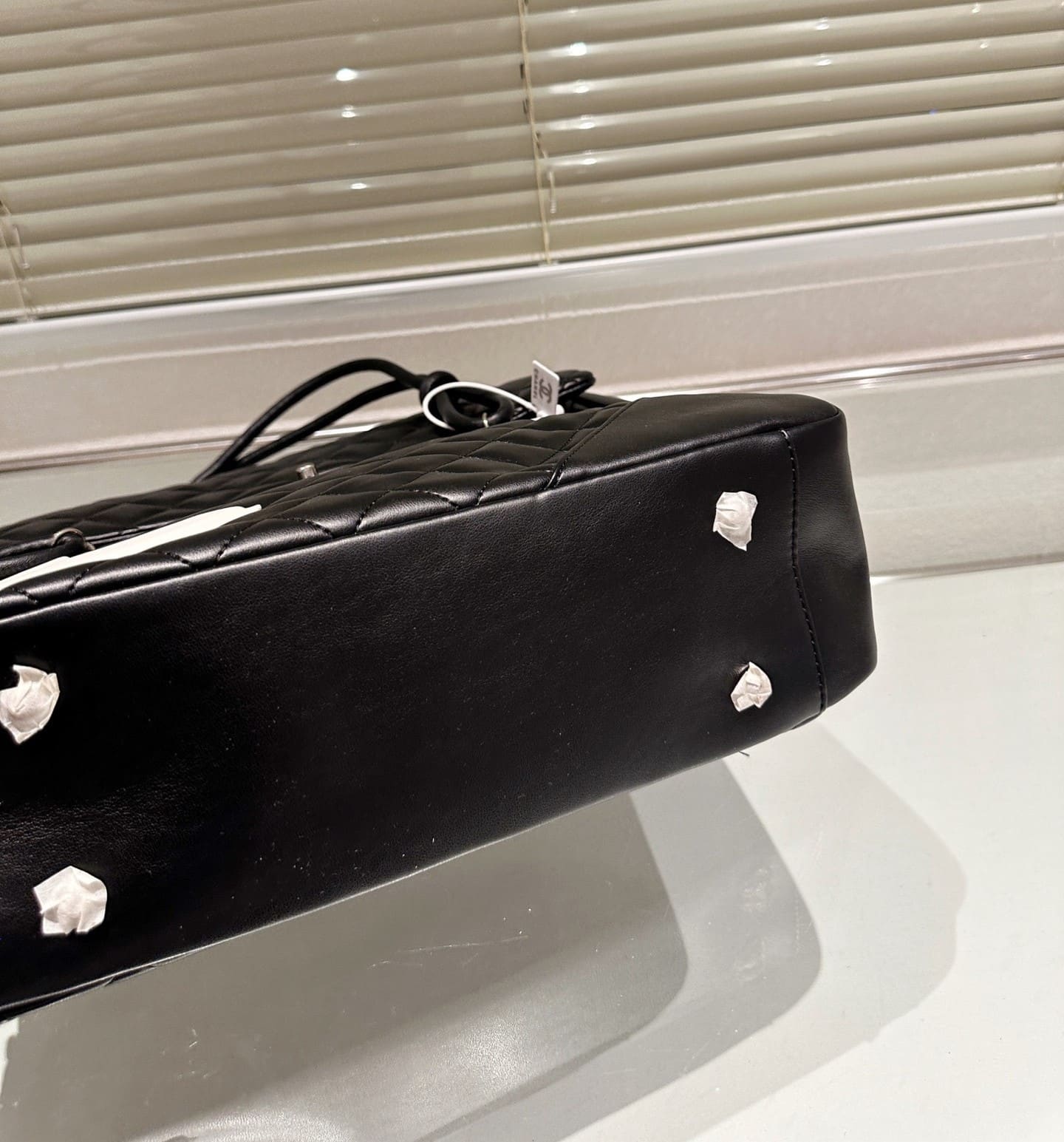 - Black quilted lambskin leather