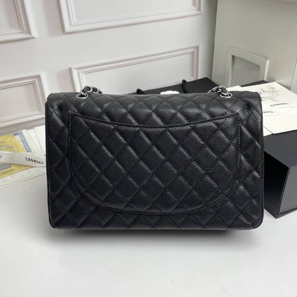 CHANEL CLASSIC FLAP SLIVER HARDWARE BLACK 33CM
