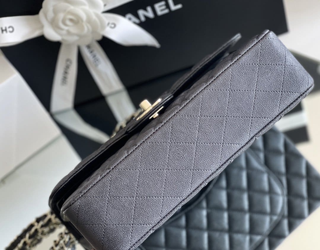 CHANEL CLASSIC GRAIN SILVER HARDWARE HANDBAG BLACK A01112