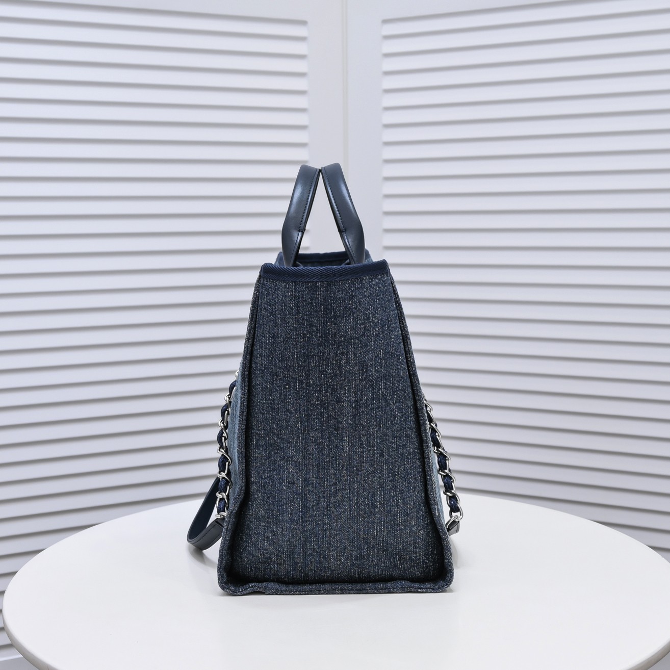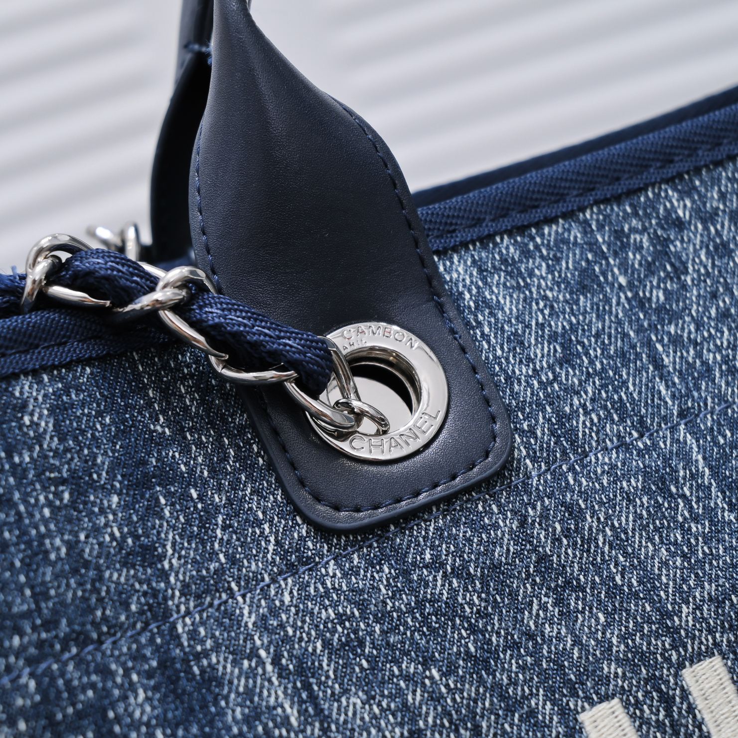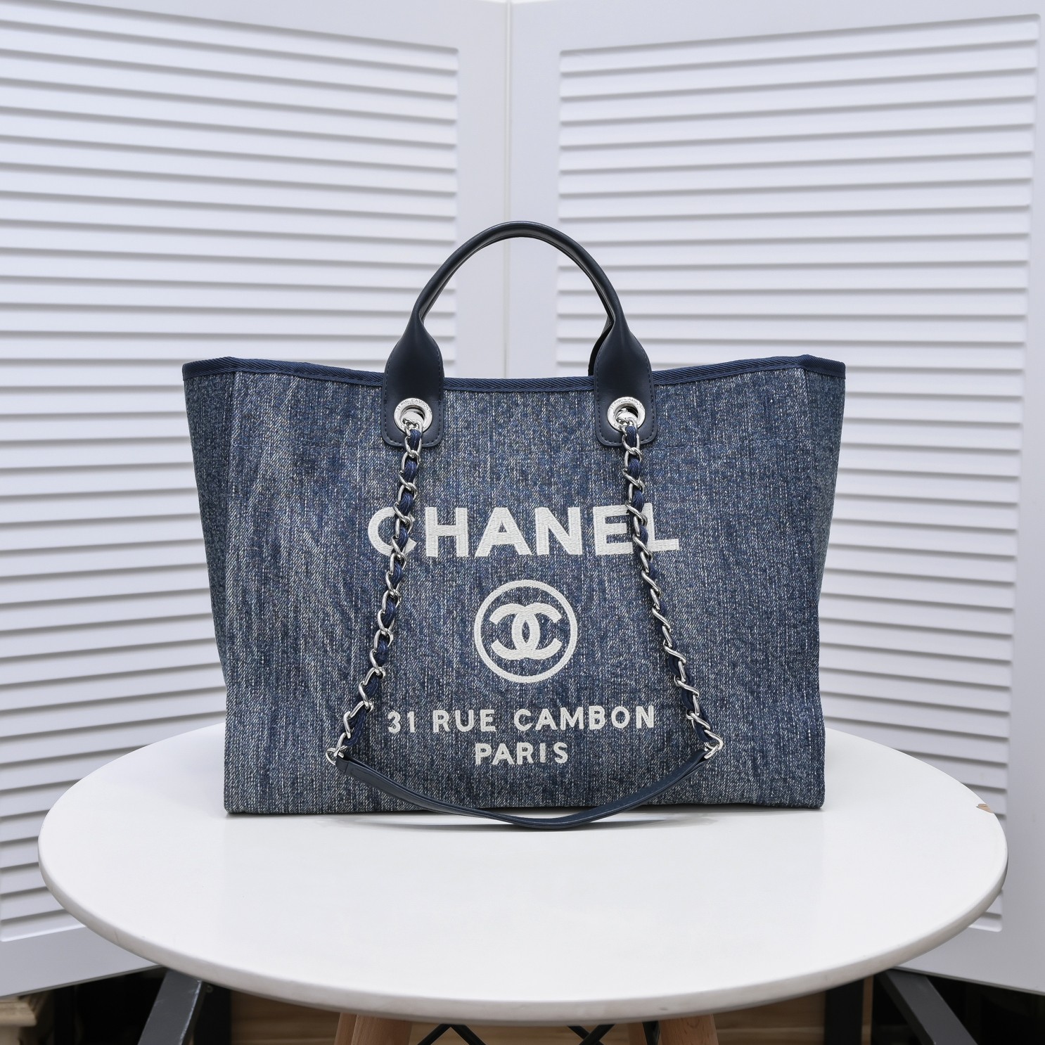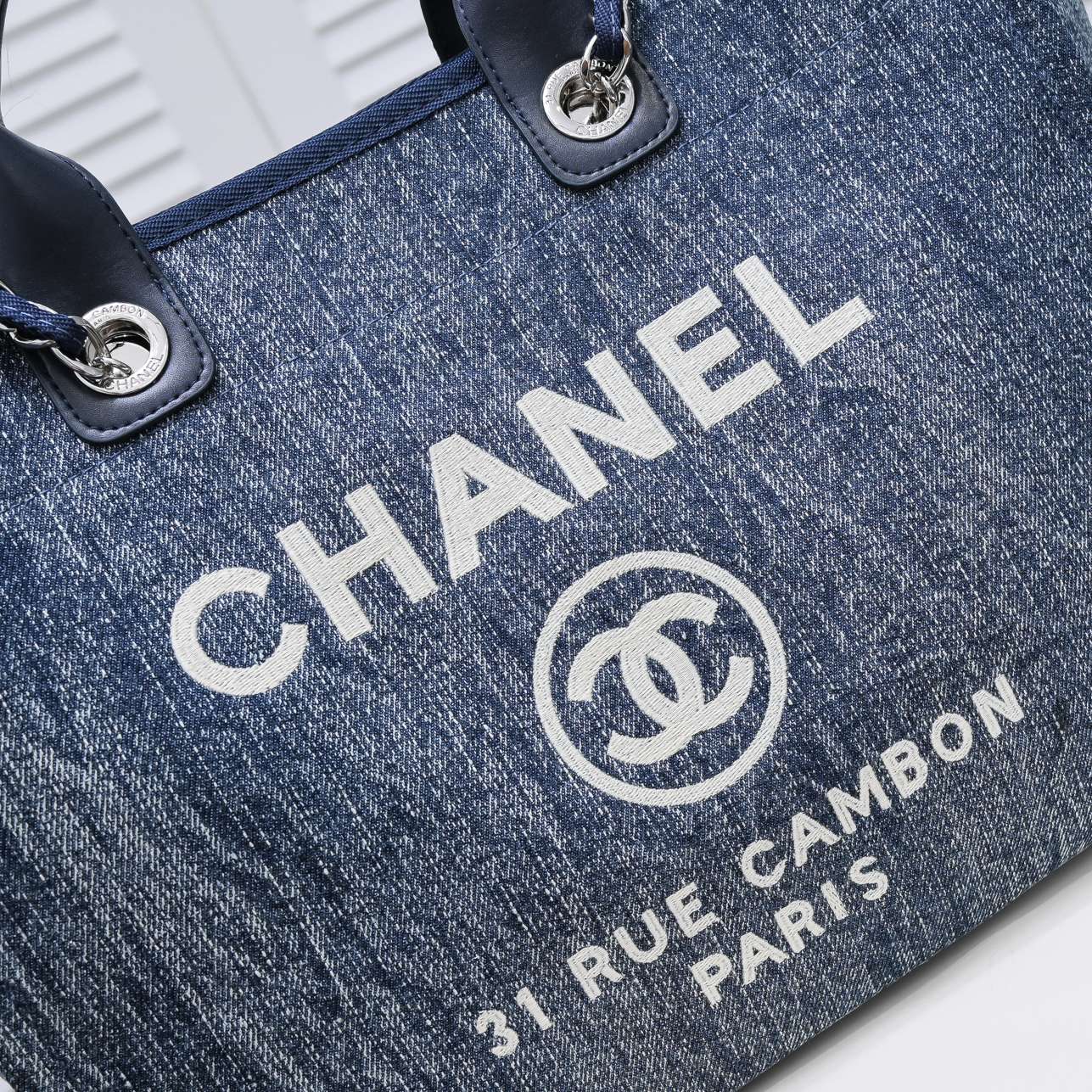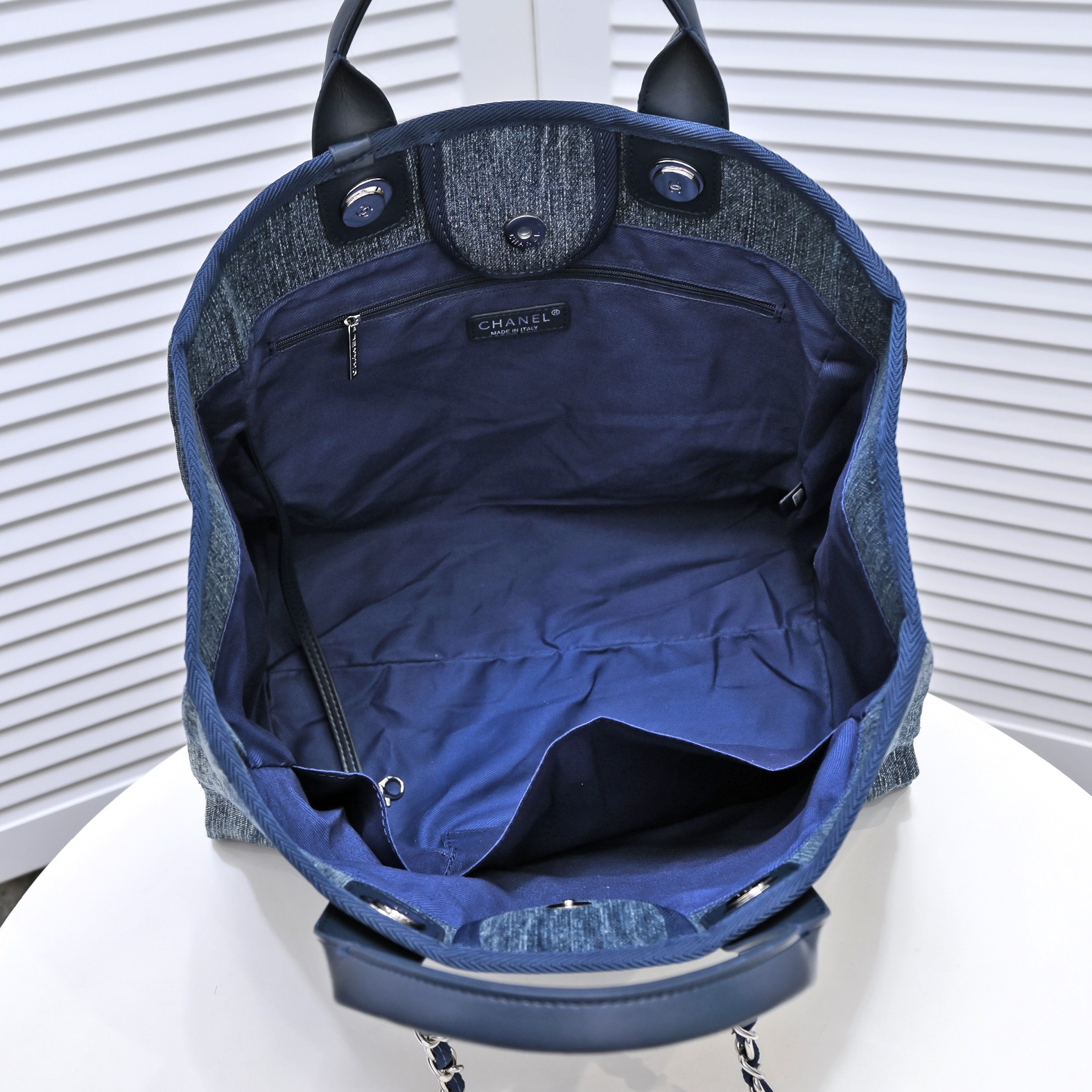 CHANEL MEDIUM DEAUVILLE BLUE CANVAS TOTE 38CM