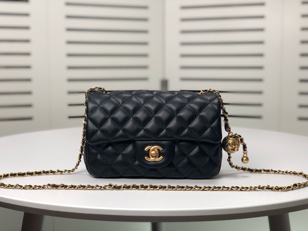 CHANEL QUILTED MINI CC RECTANGULAR PEARL CRUSH FLAP BAG BLACK 20CM