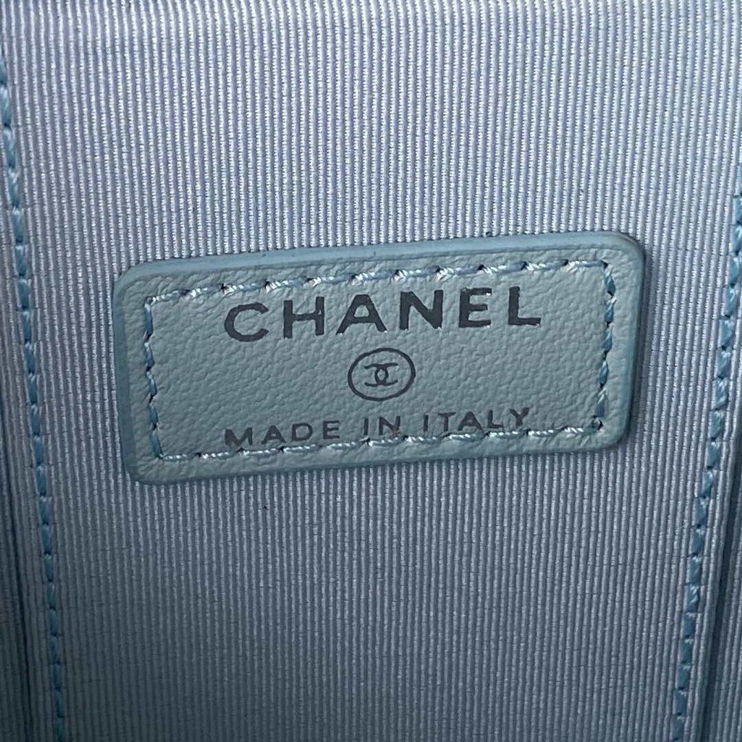 Clutches with Chain of the Spring-Summer 2023 collection: Small Vanity with Chain, lambskin & gold-tone metal, Blue on the CN official website