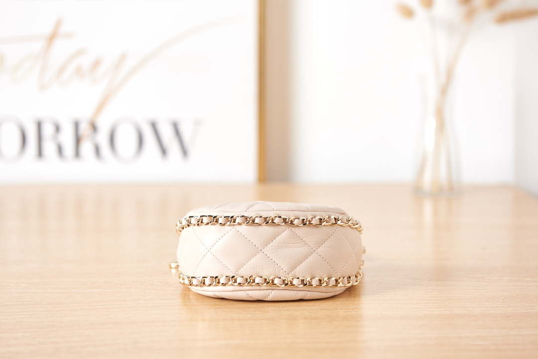 CN AP3232 Clutch With Chain Lambskin & Shiny Light Gold Metal Beige