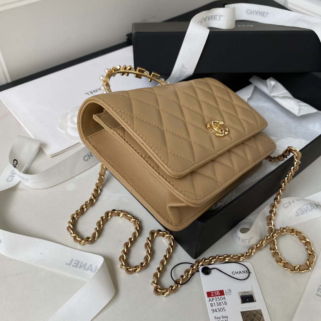 Wallets on Chain of the Fall-Winter 2023/24 Pre-Collection collection: Wallet on Chain, lambskin, imitation pearls, strass & gold-tone metal, white on the CN official website.