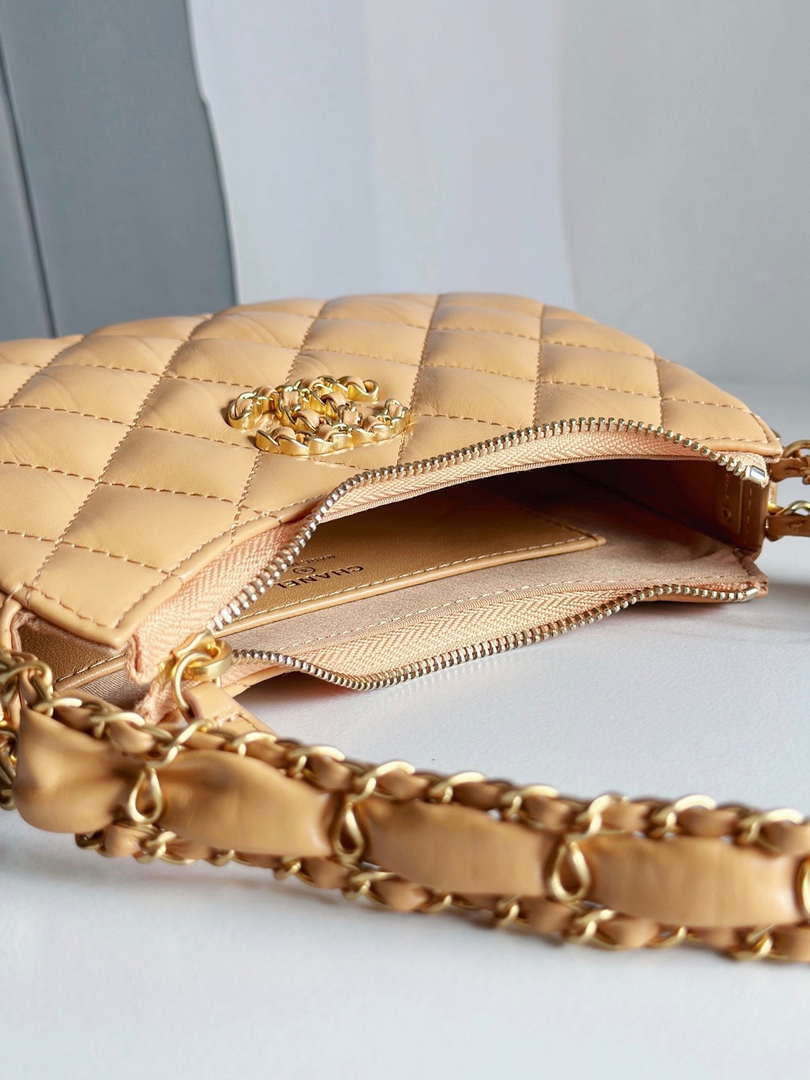 Hobo Bags of the Fall-Winter 2023/24 Pre-Collection collection: Hobo Handbag, shiny crumpled calfskin & gold-tone metal, red on the CN official website