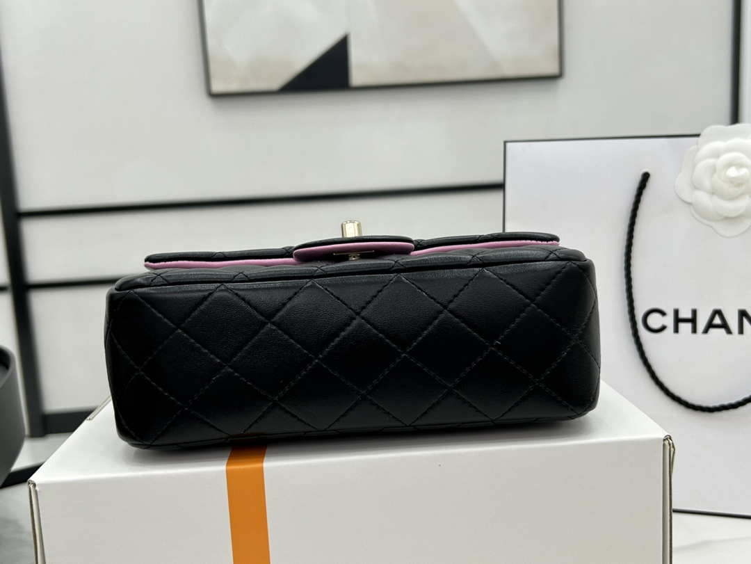 CN AS2431 Mini flap Black with Pink Lambskin bag with top handle Gold
