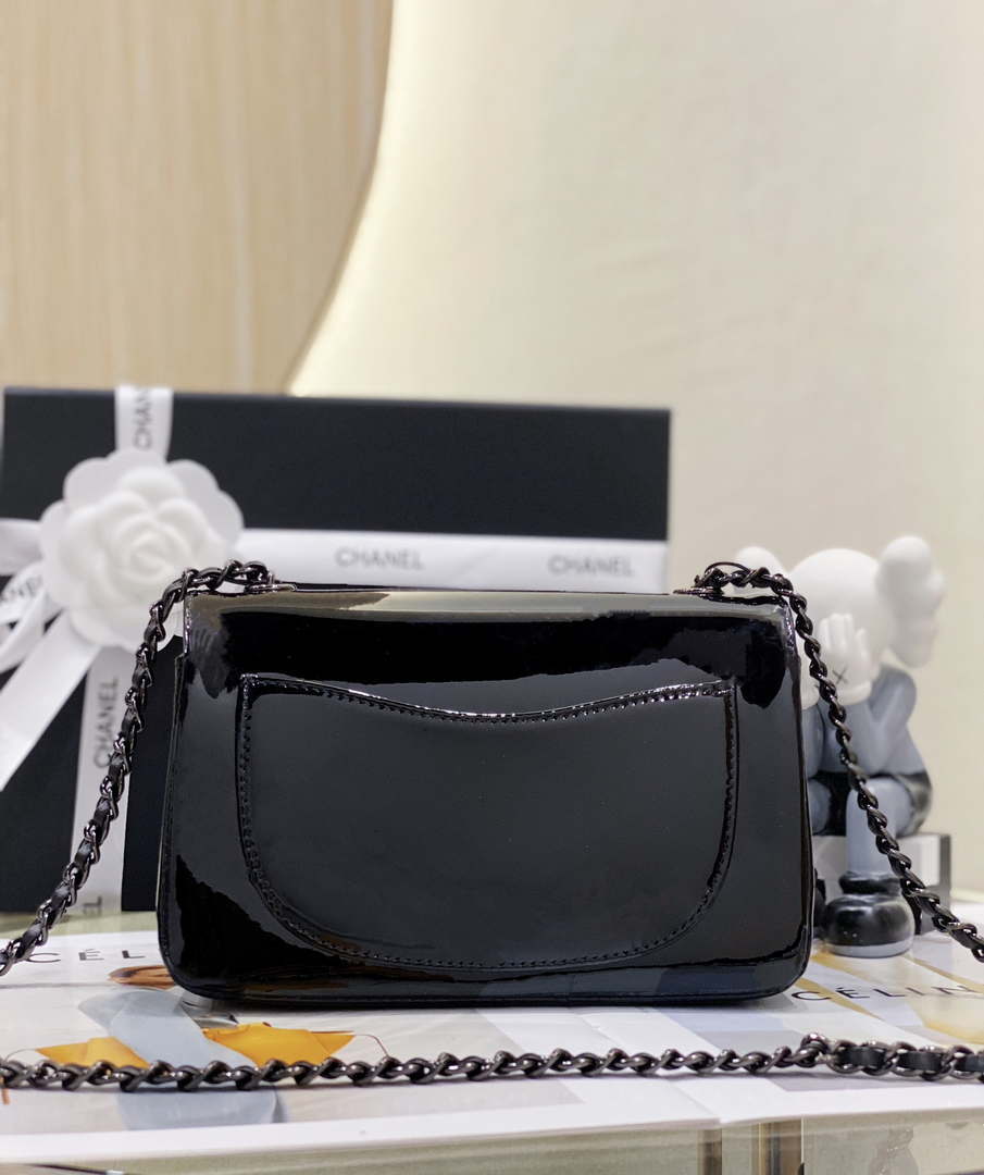 CN AS3356 Mini Flap 18cm Patent leather Camellia Black