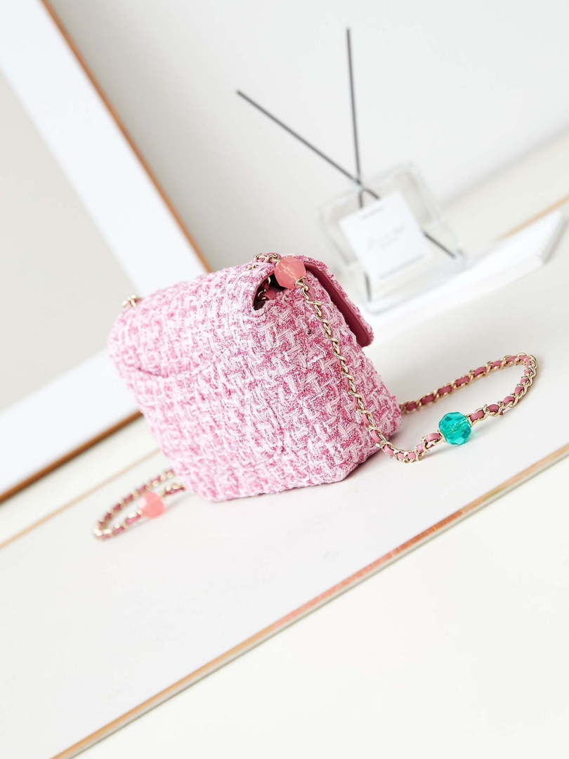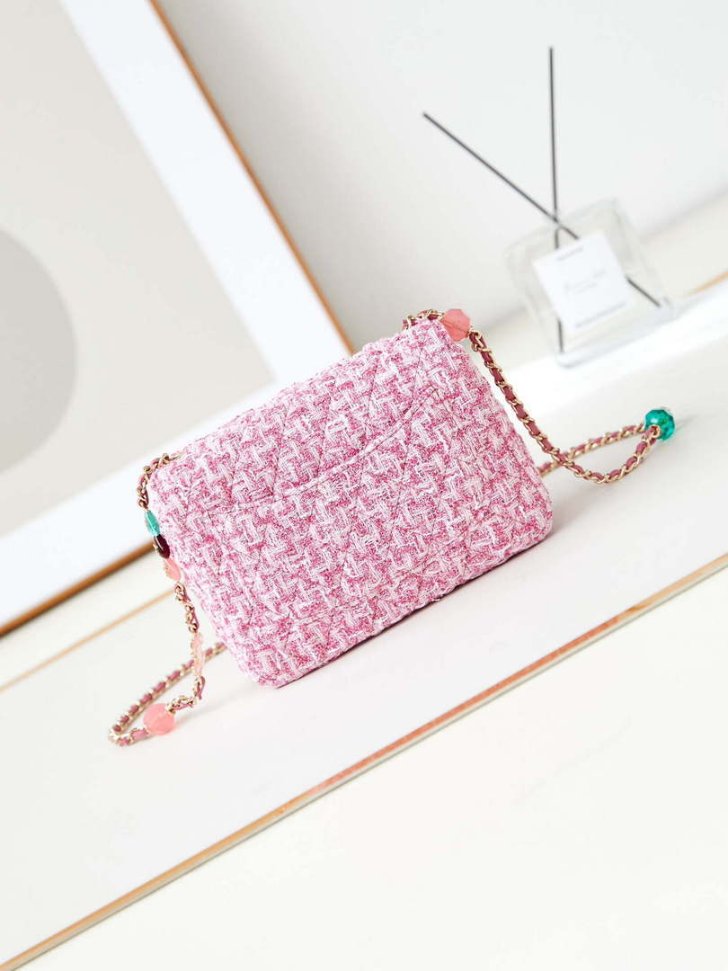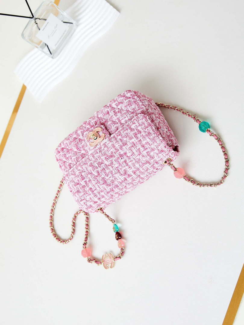Be the first to review “CN AS3783 Small Flap Bag 23P Tweed Gold-Tone Metal 18.5 cm Pink”