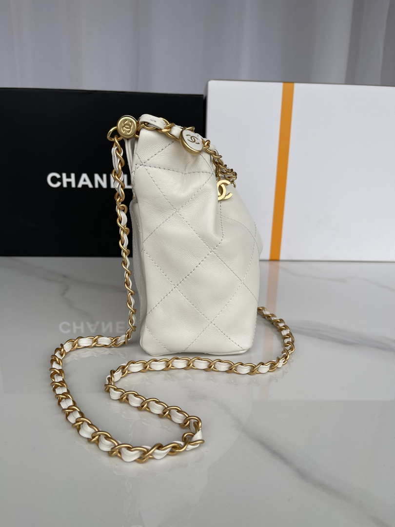 Bucket bags of the Spring-Summer 2023 pre-collection collection: Small Bucket Bag, lambskin, resin & gold-tone metal, light green on the CN official website