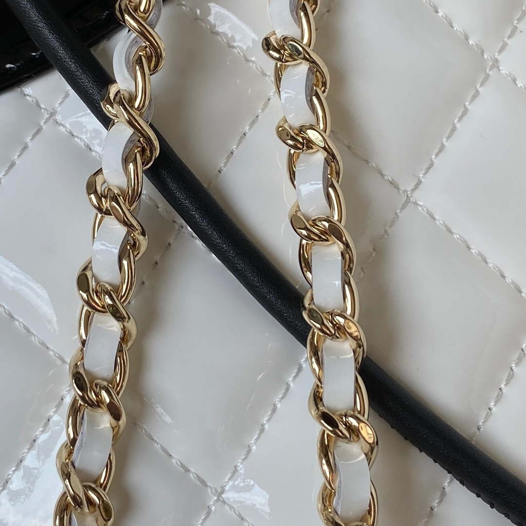 Shiny Patent Calfskin leather strap with interwoven chain detail