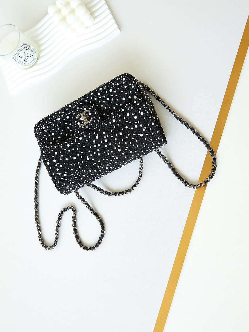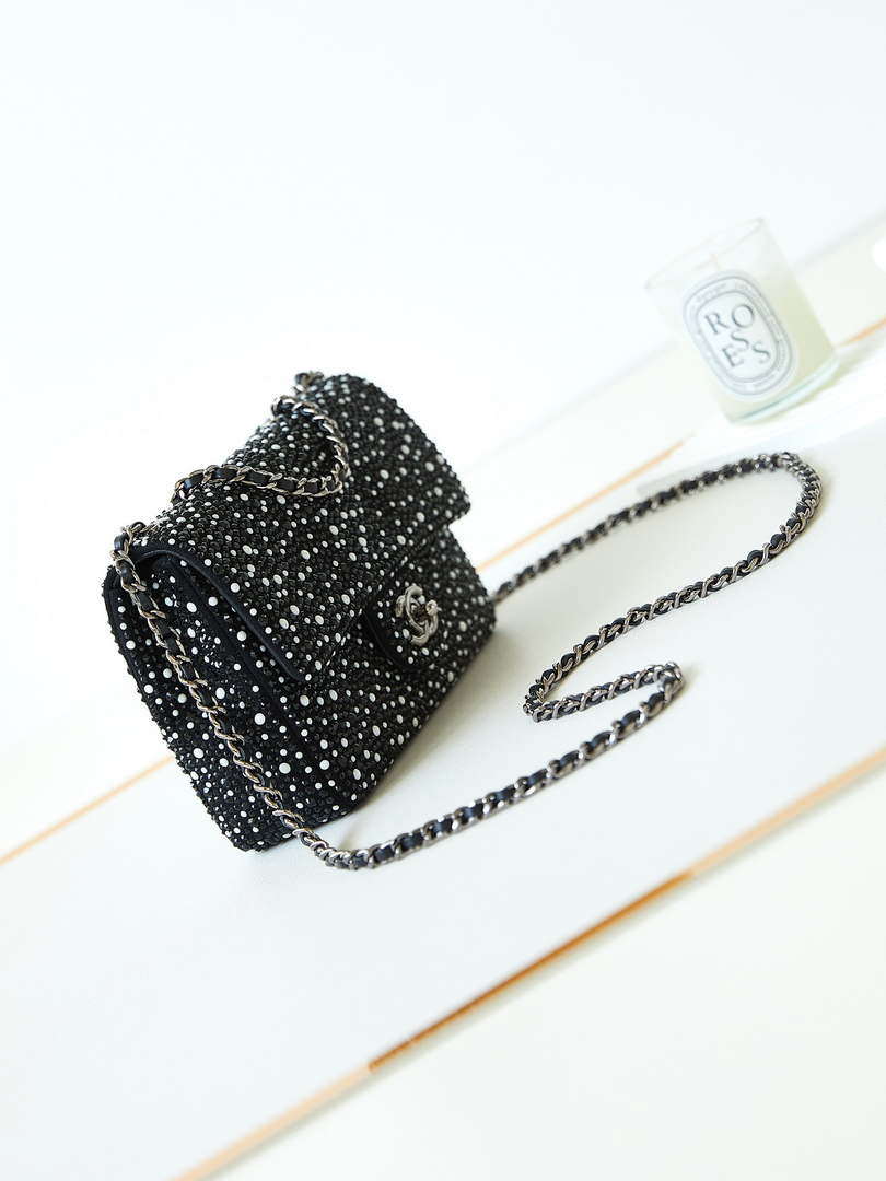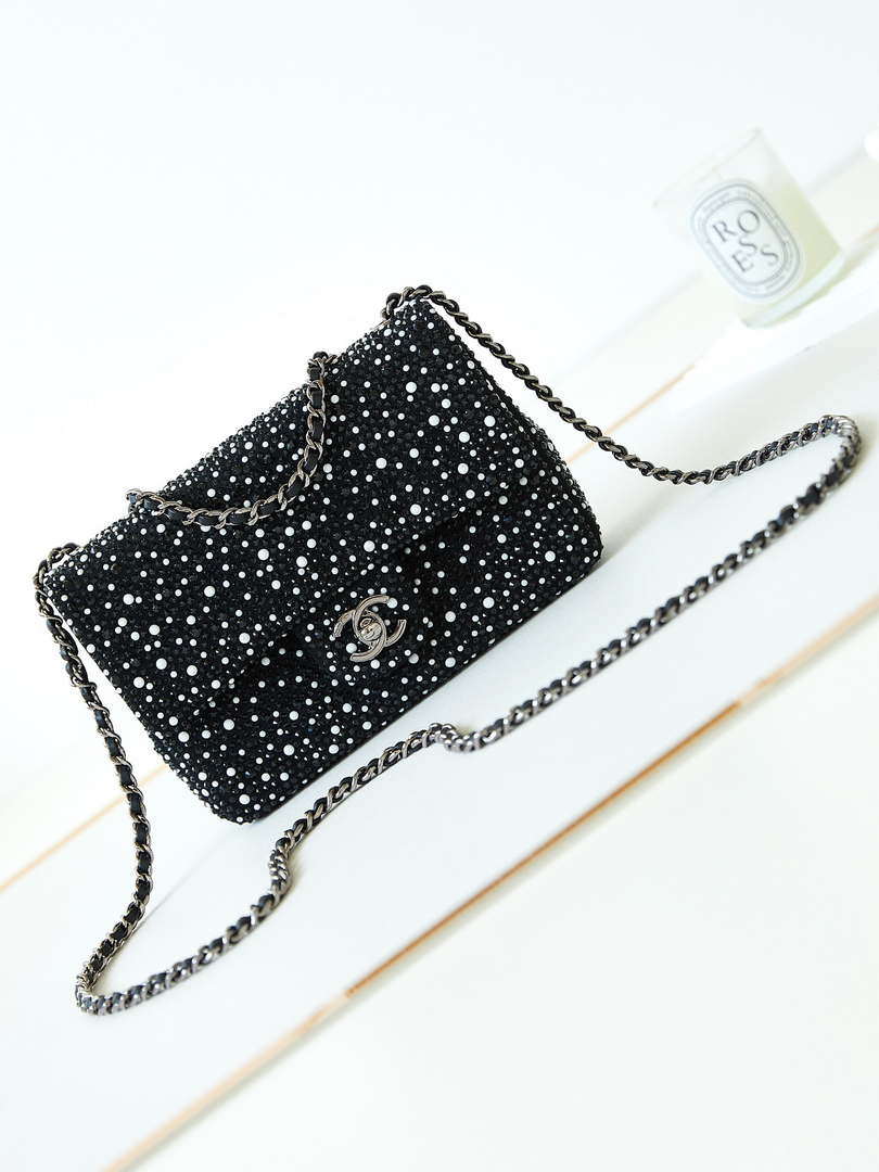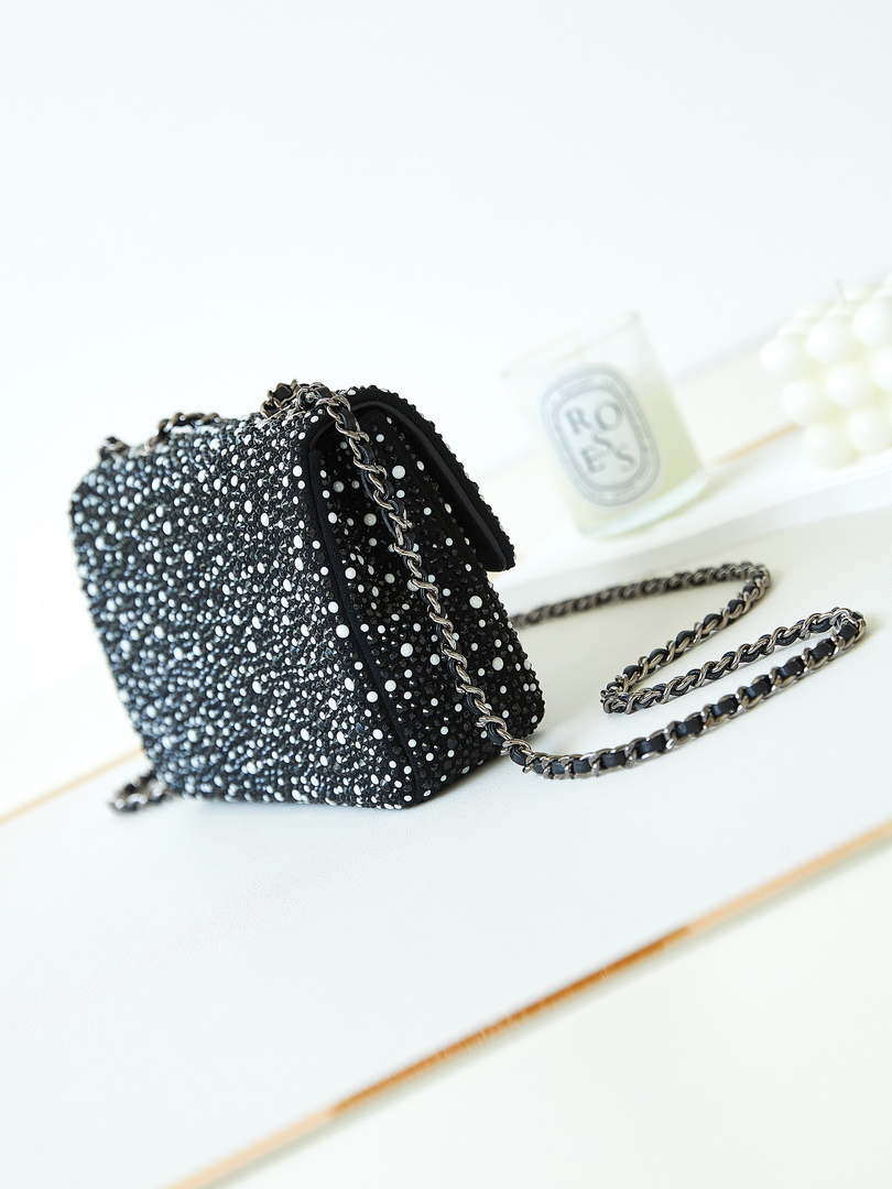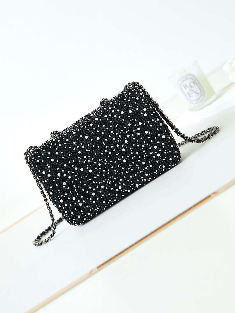 Clutches of the Fall-Winter 2023/24 Pre-Collection collection: Evening Bag, strass, crystal pearls & ruthenium-finish metal, black & white on the CN official website.