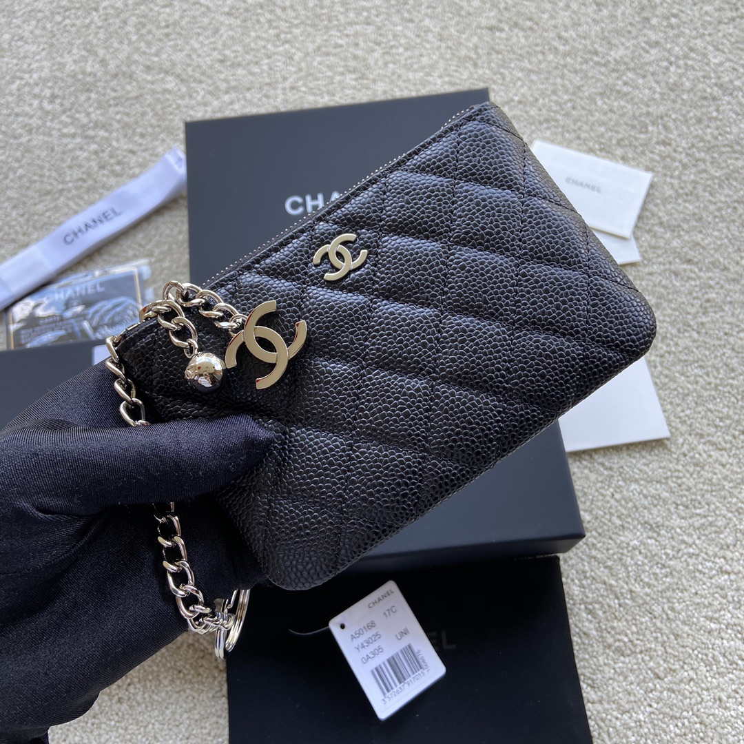 CN Classic Card Holder Zipper Lambskin A50168 Black Gold