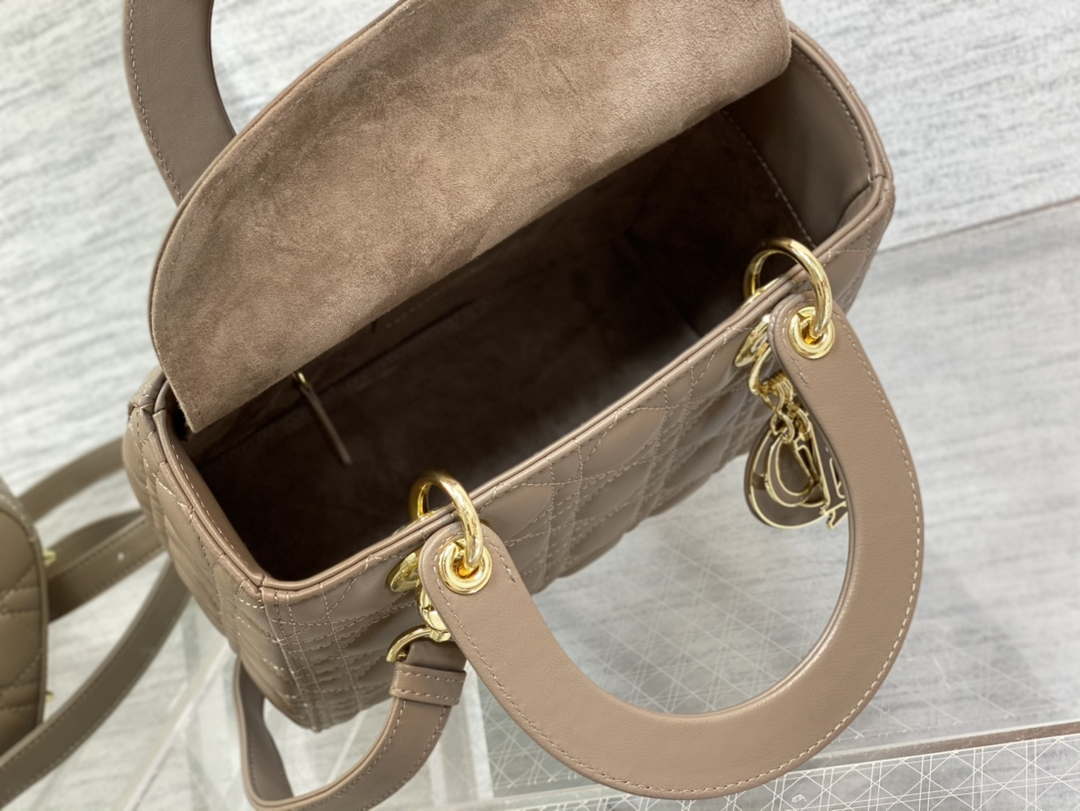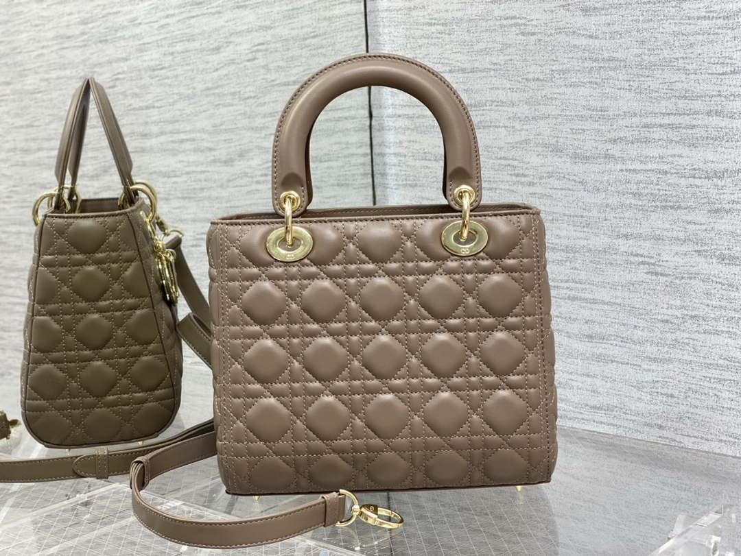 D1or M0565 Medium Lady D1or Bag Taupe Cannage Lambskin Enamel Hardware