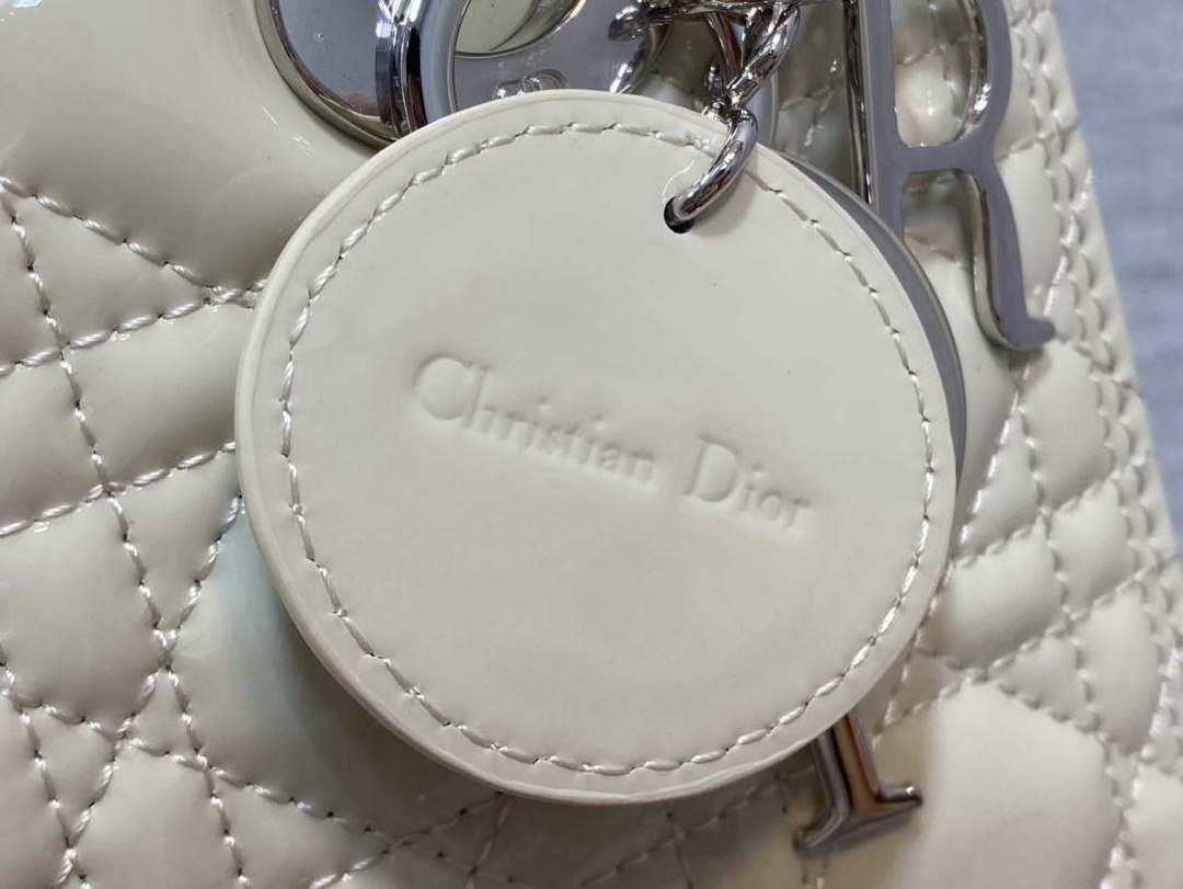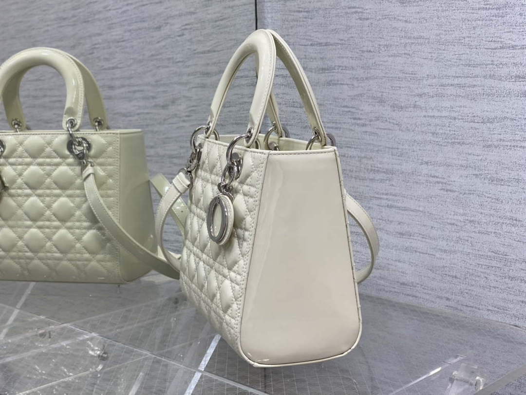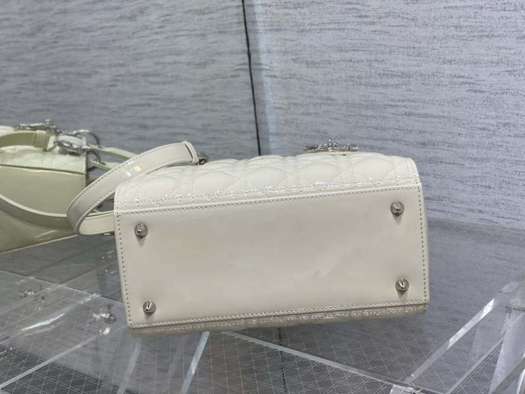 D1or M0565 Medium Lady D1or Patent Cannage Calfskin Bag White Silver