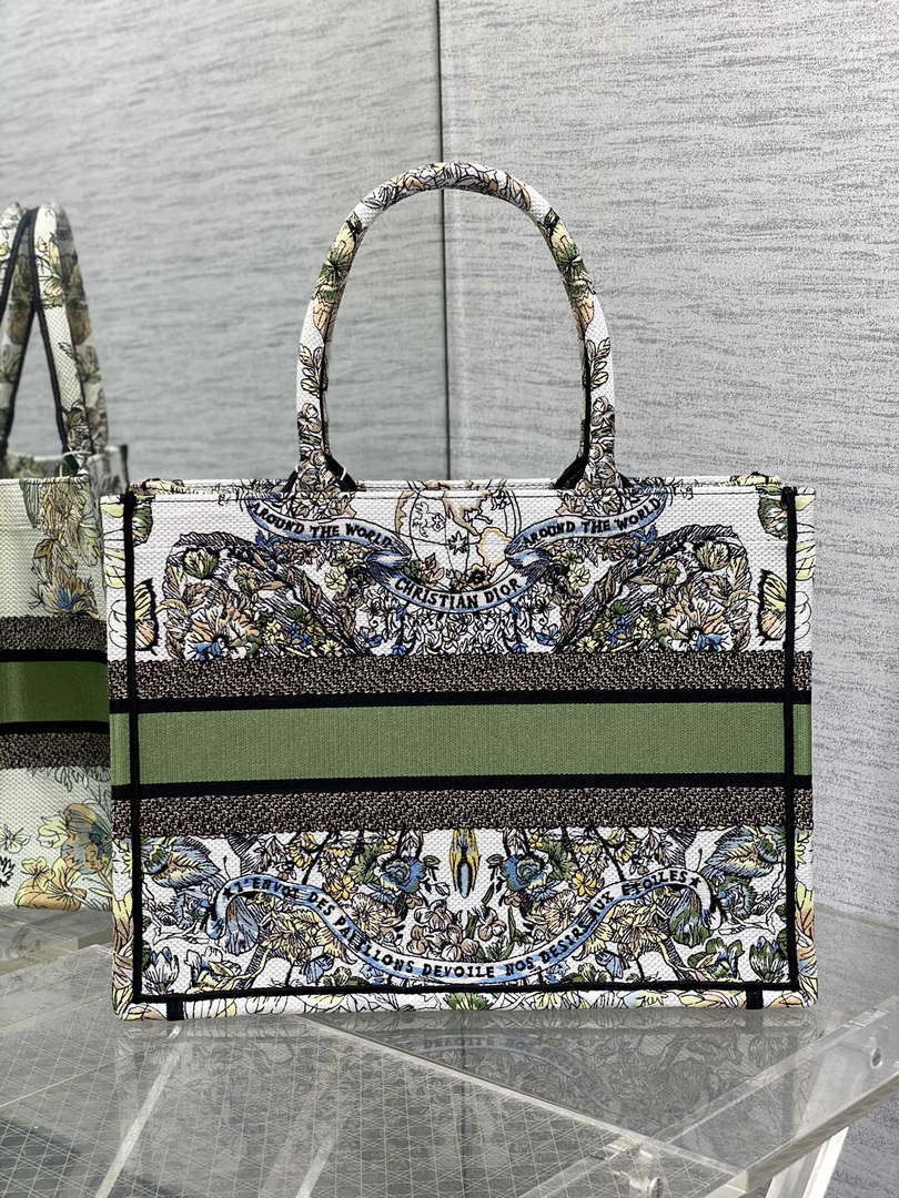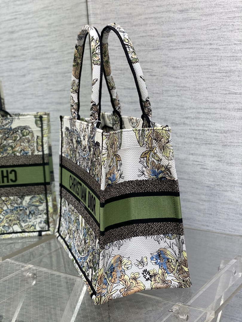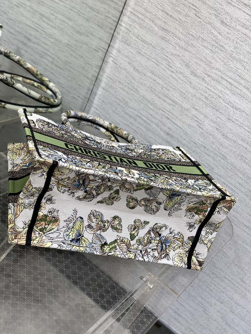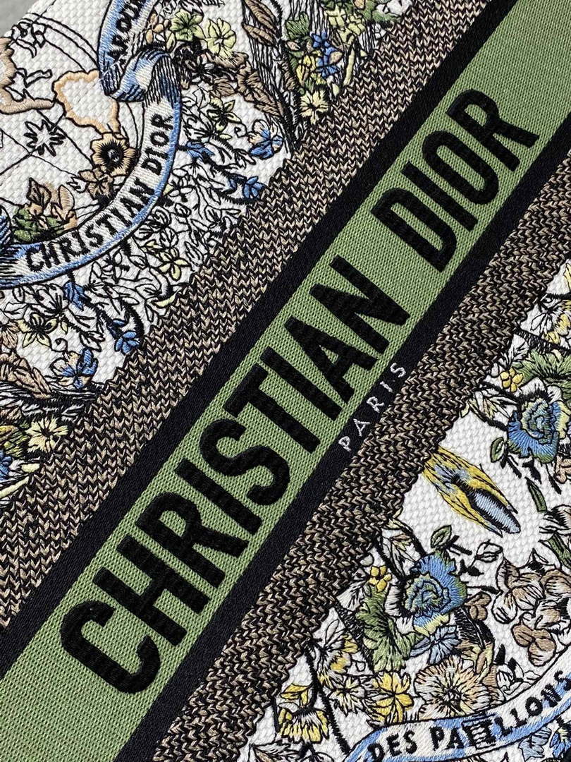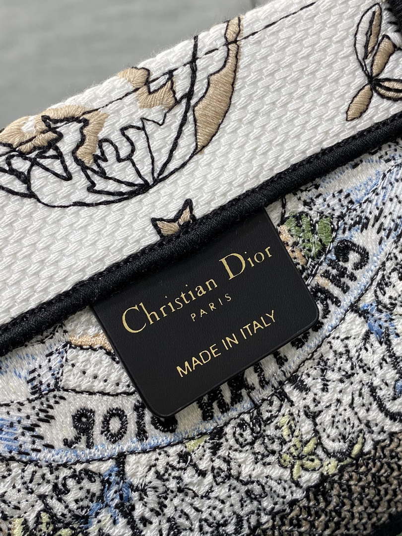 Introduced by Maria Grazia Chiuri, Creative Director of Christian D1or, the D1or Book Tote has become a staple of the D1or aesthetic. Designed to hold all the daily essentials, the style is fully embroidered with a black and white Butterfly Bandana motif, combining the butterfly with the timeless bandana pattern in a graphic spirit. Adorned with the Christian D1or Paris signature on the front, the medium tote exemplifies the House’s signature savoir-faire and may be carried by hand or worn over the shoulder.