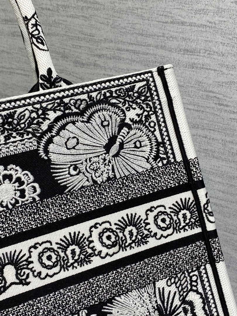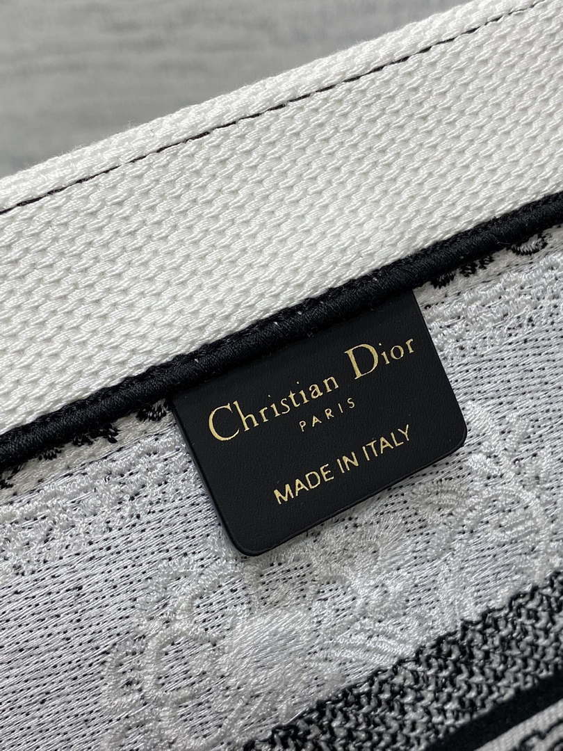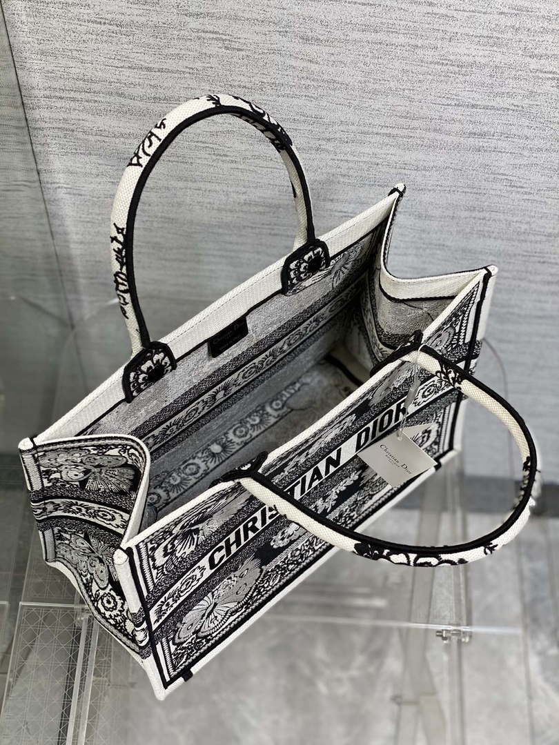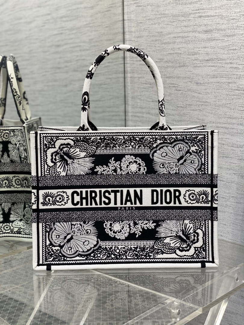 Introduced by Maria Grazia Chiuri, Creative Director of Christian D1or, the D1or Book Tote has become a staple of the D1or aesthetic. Designed to hold all the daily essentials, the style is fully embroidered with a black and white Butterfly Bandana motif, combining the butterfly with the timeless bandana pattern in a graphic spirit. Adorned with the Christian D1or Paris signature on the front, the medium tote exemplifies the House’s signature savoir-faire and may be carried by hand or worn over the shoulder.