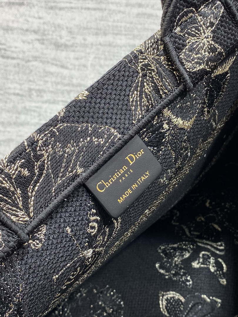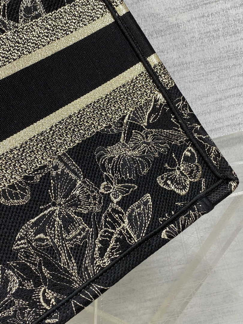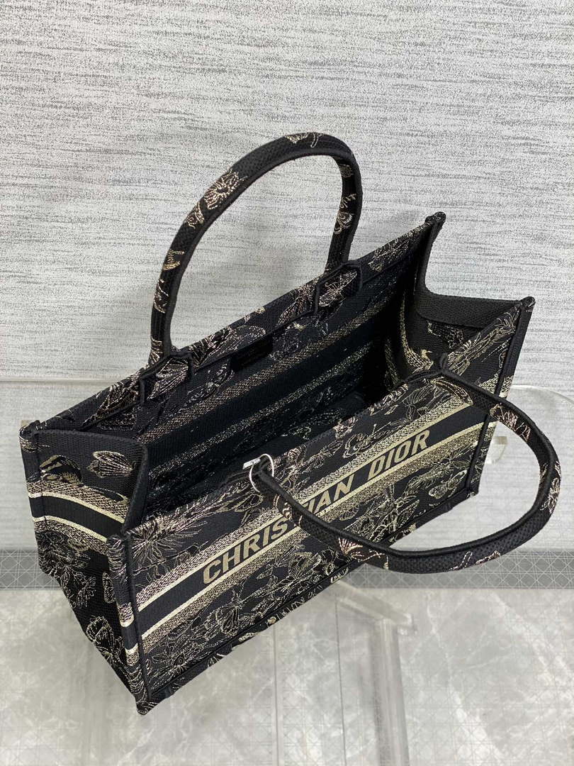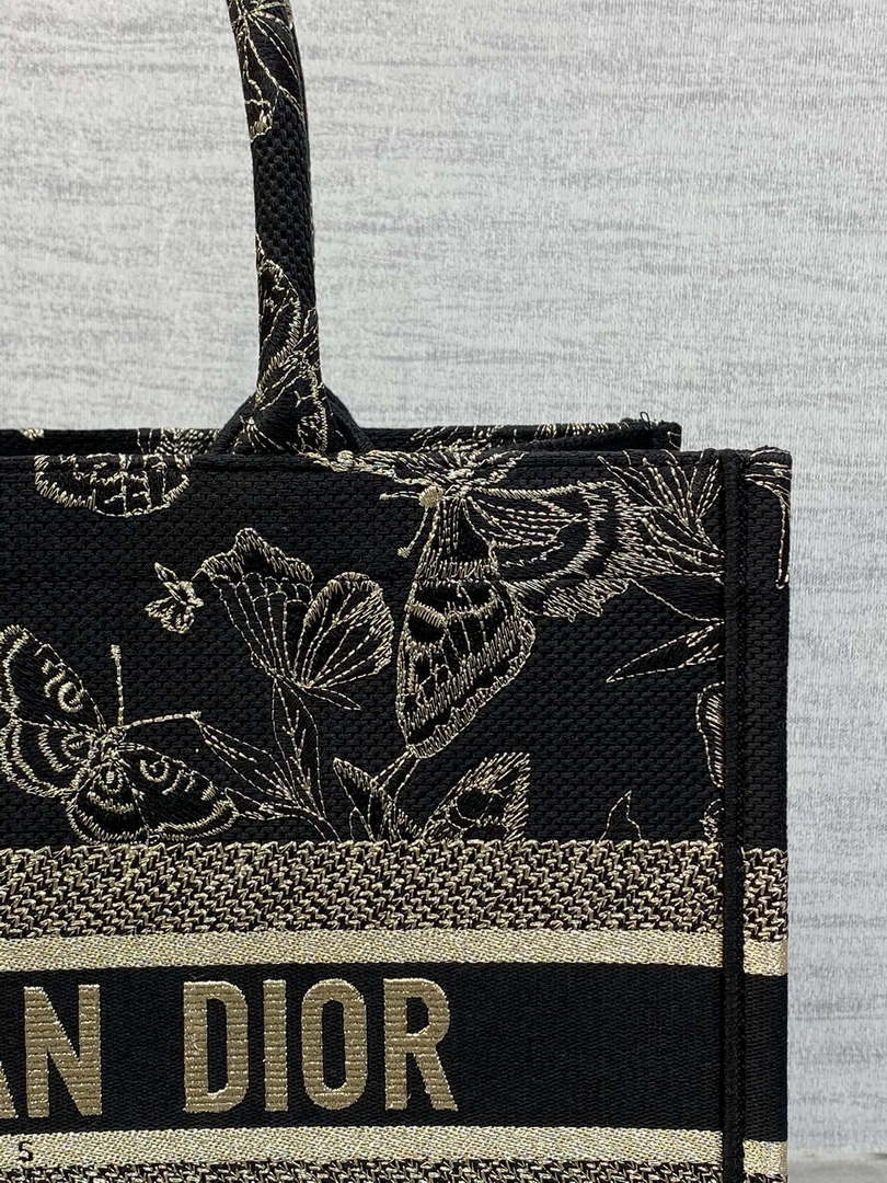 Introduced by Maria Grazia Chiuri, Creative Director of Christian D1or, the D1or Book Tote has become a staple of the D1or aesthetic. Designed to hold all the daily essentials, the style is fully embroidered with a black and white Butterfly Bandana motif, combining the butterfly with the timeless bandana pattern in a graphic spirit. Adorned with the Christian D1or Paris signature on the front, the medium tote exemplifies the House’s signature savoir-faire and may be carried by hand or worn over the shoulder.
