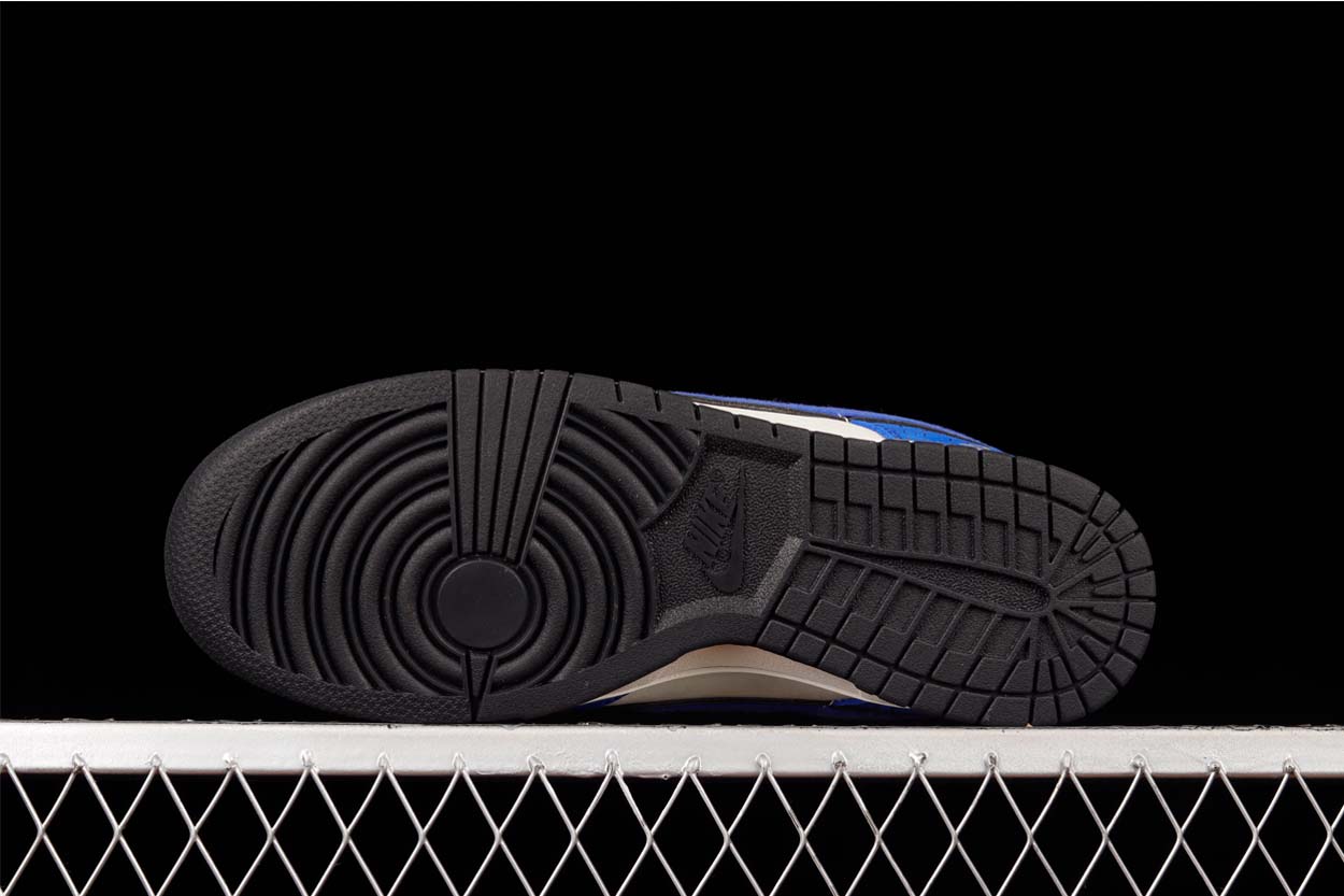 The Nike Dunk Low Jackie Robinson boasts a Brooklyn Dodgers color palette with a light grey Durabuck upper, royal blue leather overlays, an embroidered mini-Swoosh at the toe, and a felted side Swoosh – reminiscent of baseball caps in the late-1940s. Throughout the design, Robinson’s famous quote, “I’m not concerned with you liking or disliking me…All I ask is that you respect me as a human being”, is printed in a pattern format. At the heel, Robinson’s number 42 is embroidered, providing a custom feel.