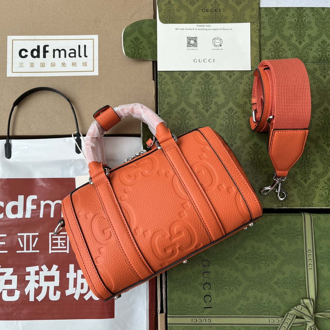The all-black jumbo GG design returns for Pre-Fall 2023 atop a selection of leather luggage pieces. A reinterpretation of GGo GG’s initials, the motif is an evergreen of the House that appears prominently in maxi size for an eye-catching logo feel. This mini duffle bag in the emblematic leather features a top handle and shoulder strap for multiple ways to wear.