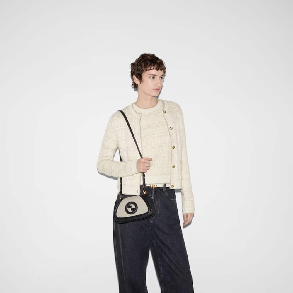 GUCCI BLONDIE MINI SHOULDER BAG NATURAL BLACK 22CM 815700 HAAKF 2546