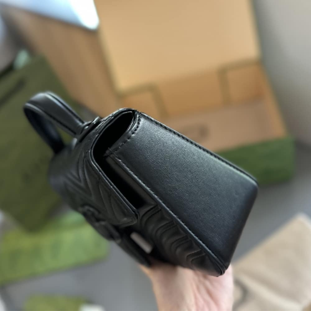 GUCCI GG MARMONT MINI TOP HANDLE BAG BLACK AND BLACK 22CM 702563 DTDFV 1000