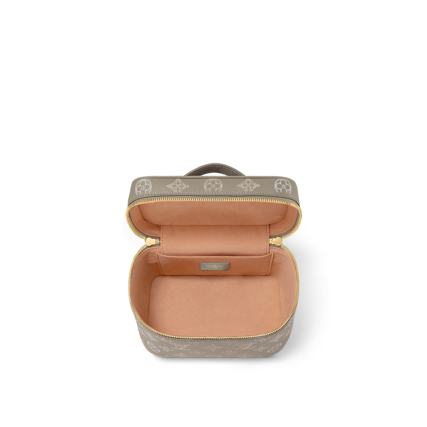 Compact and supple, the Nice Mini vanity case in Mahina perforated slips comfortably into most travel bags. Designed to hold toiletries and grooming essentials, the bag features a washable lining. The double-zip closure, actioned with LV-engraved metal pulls, keeps items secure.
