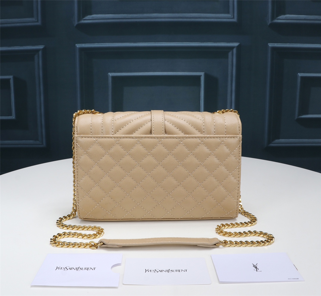 Saint Laurent Envelope Small In Quilted Grain De Poudre Embossed Leather Beige 21Cm 600195Bow912721