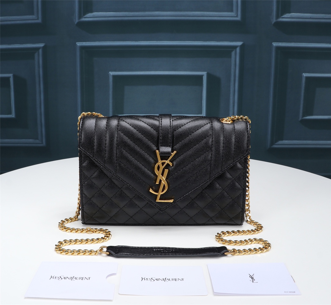 Saint Laurent Envelope Small In Quilted Grain De Poudre Embossed Leather Beige 21Cm 600195Bow912721