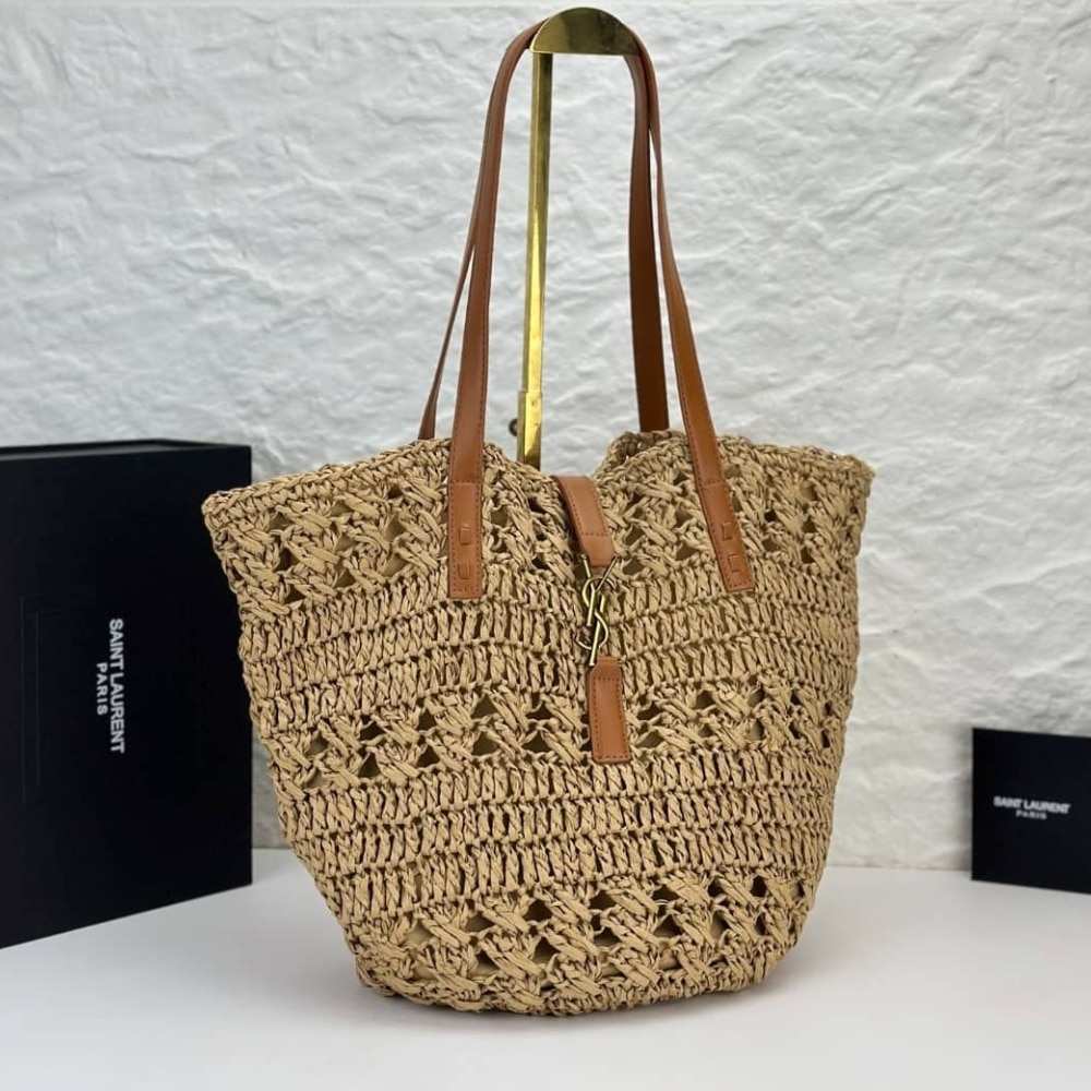 Saint Laurent Panier Raffia Natural Brown 39Cm 688221 Gaaac 2080