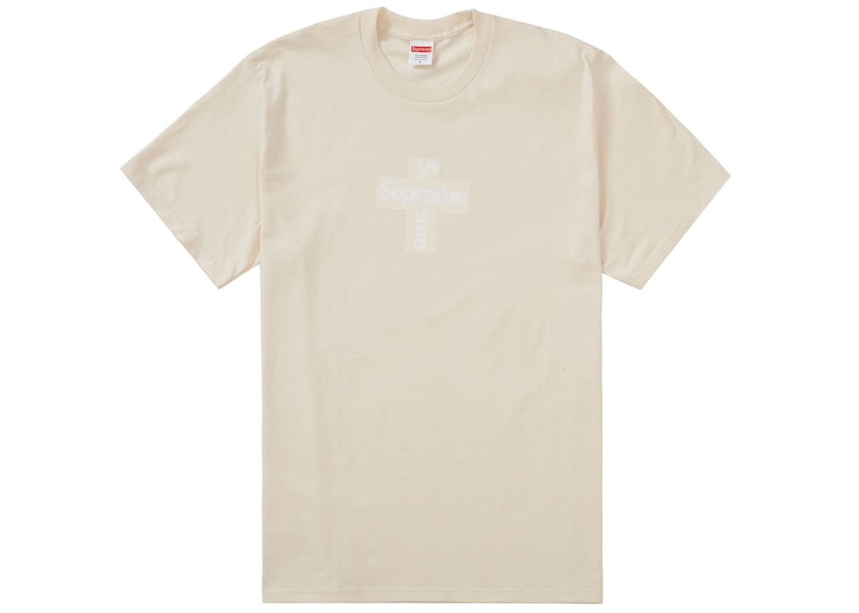 This natural Supreme Cross Box Logo t-shirt dropped on December 17th, 2020, as a part of the brand’s FW20 winter tees delivery. This colorway features a natural colored t-shirt with two overlapping natural Box Logos. The Supreme Cross Box Logo T-shirt was released just two weeks after the brand released the design in hoodie form. This Supreme t-shirt was released in eight colors at a retail price of $38 USD.