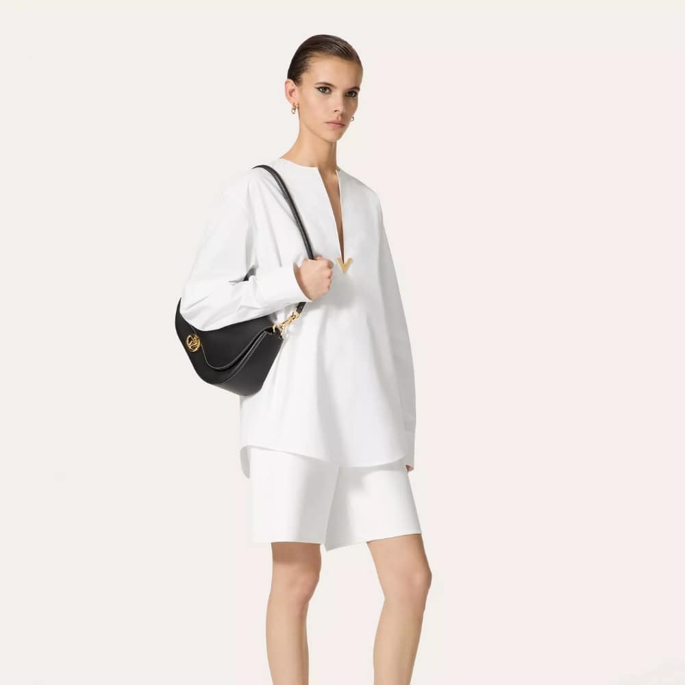 Valentino Garavani Locò Shoulder Bag In Pleated Nappa White 26Cm
