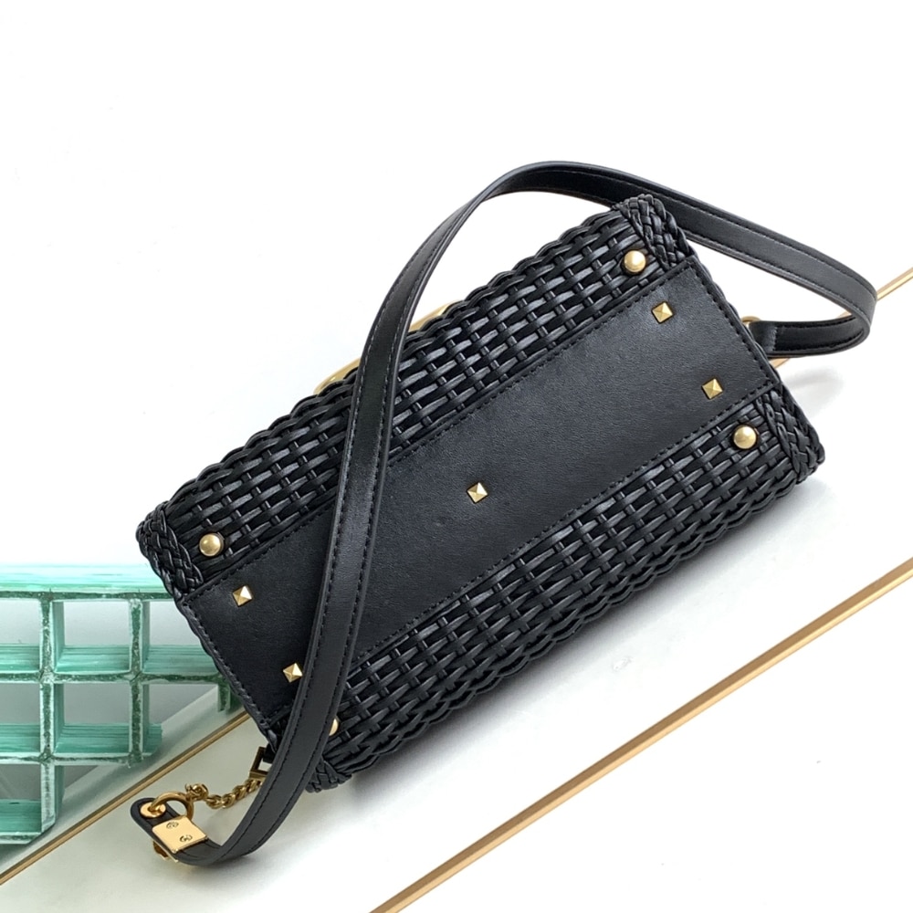 Valentino Garavani Rockstud Raffia Clutch Bag In Brown 28cm